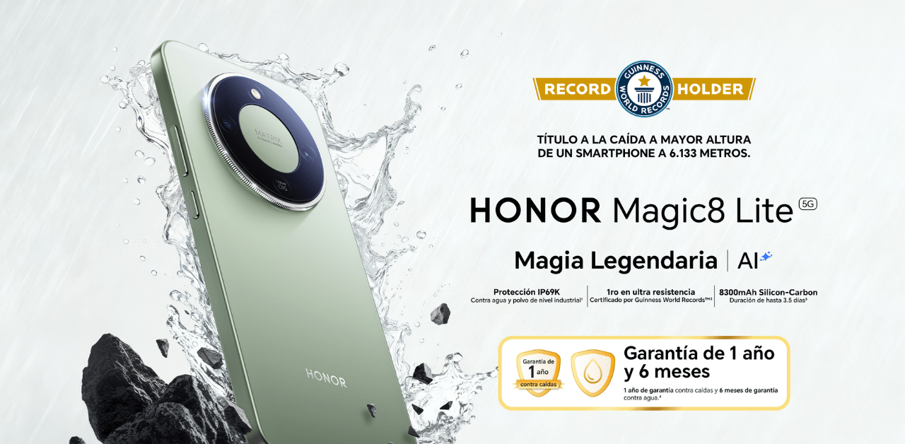 El dispositivo obtuvo el Guinness World Record por la caída a mayor altura de un smartphone, tras ser lanzado desde una altura de 6.1 metros en Dubái el pasado 29 de septiembre. La prueba fue ejecutada bajo supervisión oficial de Guinness World Records, garantizando trazabilidad y verificación técnica del proceso. El equipo fue sometido a caída libre desde gran altitud, exponiéndose a variaciones de presión atmosférica, fricción aerodinámica y choque de impacto final, manteniendo su integridad estructural. Este hito posiciona al Magic8 Lite como uno de los smartphones con validación pública más extrema en materia de resistencia física dentro de su segmento.